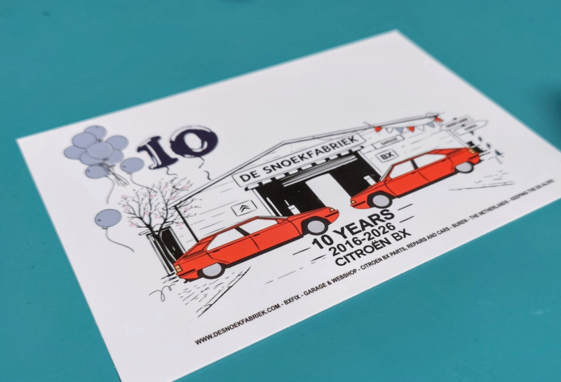 limited edition De Snoekfabriek BXfix 10 years garage merch kaart 2016-2026